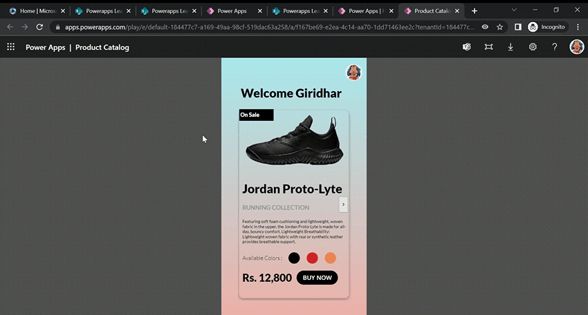 Please read some of the UI/UX tricks that I have followed to create the below power app of a sample product catalogue. By the way, I have used 100% out-of-the-box controls to accomplish it. Apart from regular controls like labels, buttons, and image controls. I have used below controls: