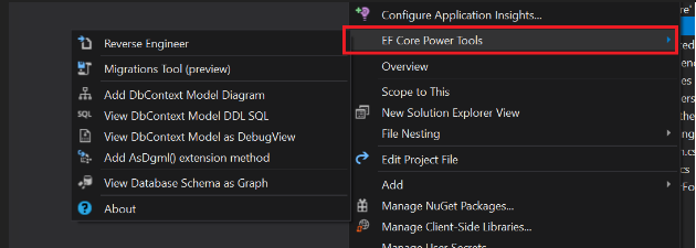 - Utilizing EF Core Power Tools.