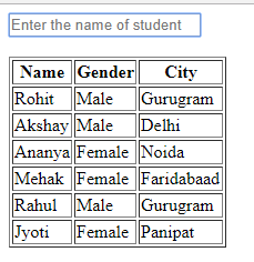 Whenever we type anything in the text box, the search will be done across all columns. If we want to perform the same search functionality on any specific column, then simply do that like this.
