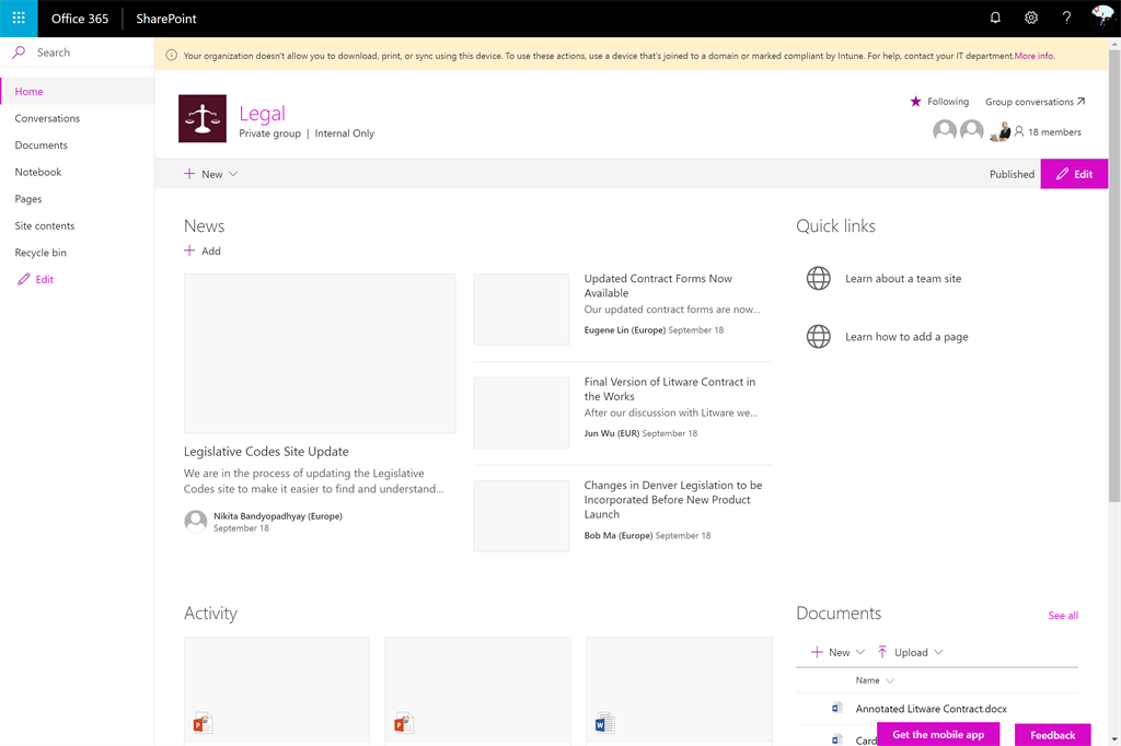 Device-based policies for SharePoint and OneDrive helps to block data on corporate resources for unmanaged devices. It limits access to the content to the browser, prevents files synchronized with OneDrive on unmanaged devices.