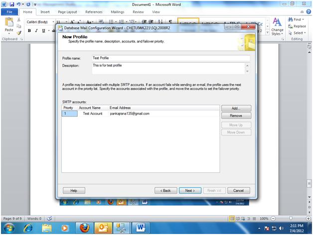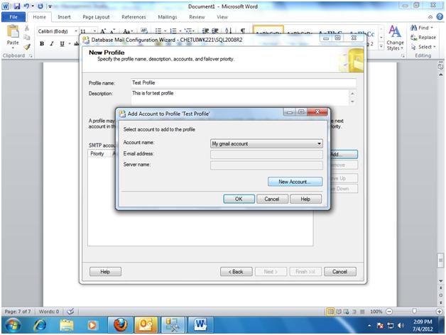 Profile, add Account Name to My Gmail Account and click on New Account Button.