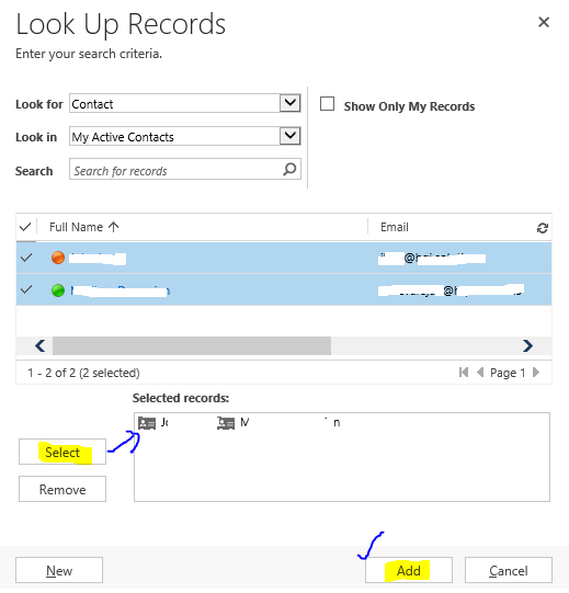 By going To Address field and clicking the magnifier icon, select the contacts from the lookup.