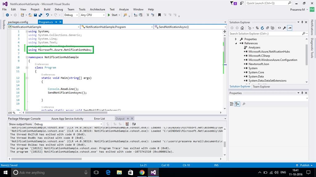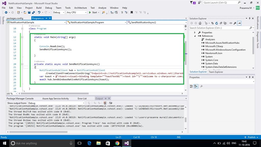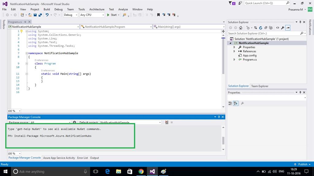 In this blog, we will see about sending a notification, using console Application.