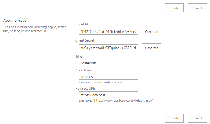 - On App Information section, click Generate button next to the Client Id and Client Secret textboxes to generate the respective values.