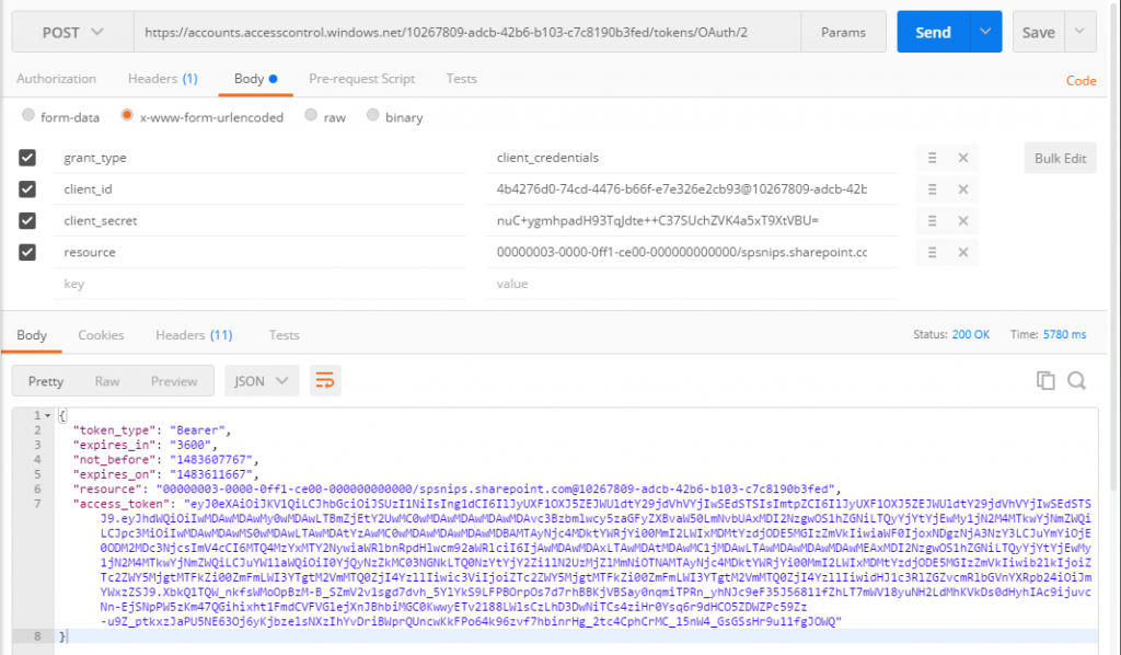 Now we have the access token, so we can now pass this token in Authorization header with the SharePoint REST API to get the information.