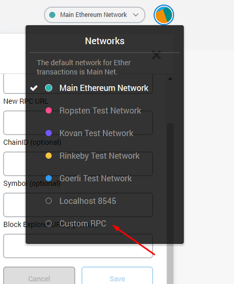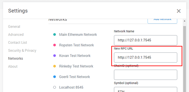 Copy the RPC server URL from Ganache and paste it into New RPC URL in Networks Tab and click Save.