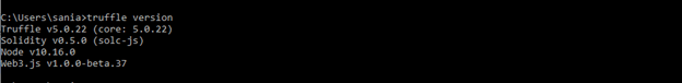 After the download is complete, type “truffle version” on node terminal to verify that truffle is successfully installed.