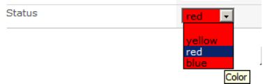 It has a field called "Status’, this filed has a drop down list Contains Red, Green and Yellow.