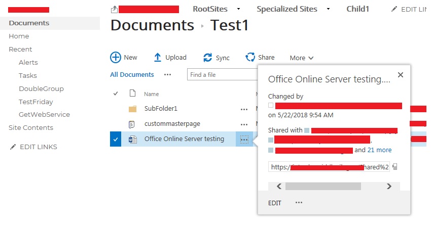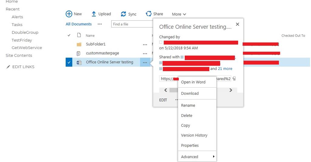 - Select an item under any app in SharePoint and click on the second level ECB Menu (For example click “…” of any document and then again click “…”, as shown below – marked in green color).