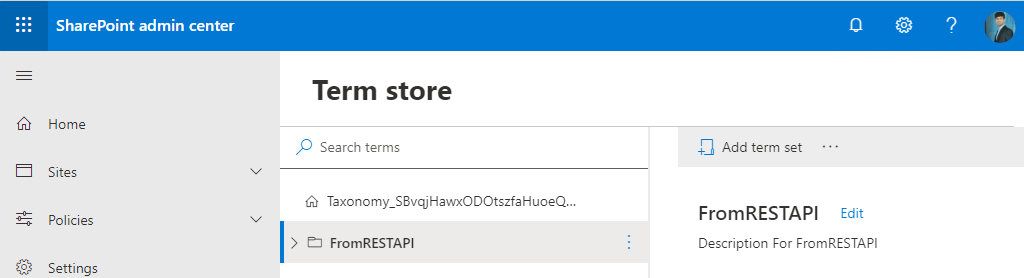 - "@odata.context": "https://testinglala.sharepoint.com/_api/v2.1/$metadata#termStores('root')/groups('122d92ab-d7a8-479f-9888-8d4421f8218f')/sets",