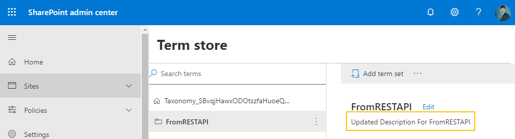 We can do all the CRUD operations on Term Sets. Please note that for example purposes, we are using People Group which can be viewed in the first image in the Groups REST API.