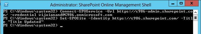 Set-SPOSite -Identity https://c986.sharepoint.com/ -Title "Title Updated"