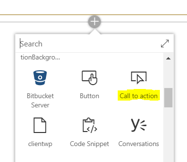 Click + sign to add the web part and then click "Call to action" web part.