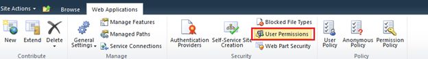 Central Admin –> Web applications