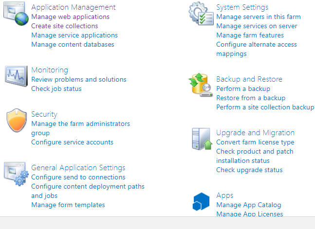 To create your first SharePoint application, first of all, we need to log in to our SharePoint Central Administrator. Once you log in, you will be redirected to the below-shown home page.