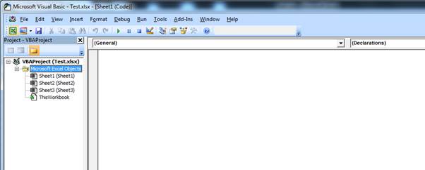 Next step is to click Visual Basic icon and you will get the screen, given below.