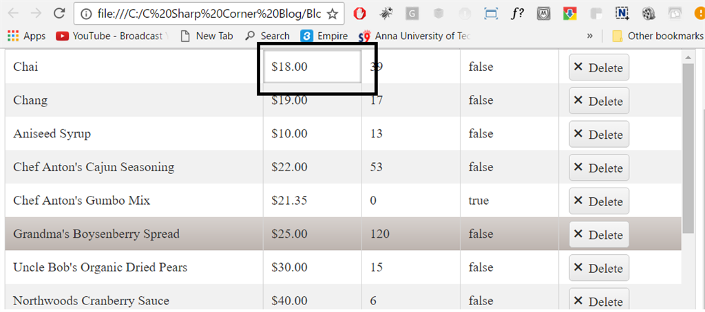 From the above image, you can notice that the navigation happens for non editable columns also. Now, let us skip this navigation for non-editable columns with some simple logic.