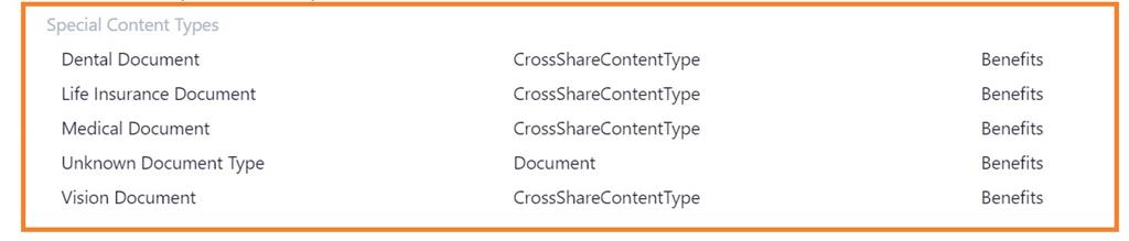 Examples of content types: Metadata, Document in Library, Item in a List, etc.
