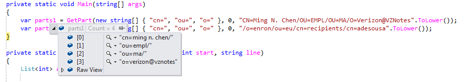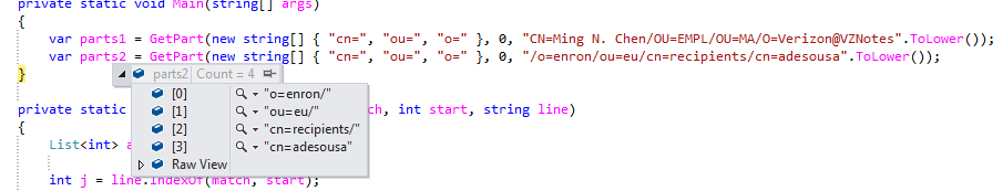- private static List < string > GetPart(string[] matches, int start, string line)