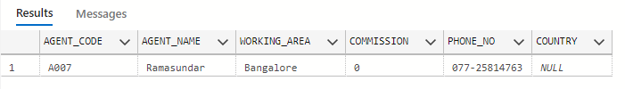 Where working_area = 'Bangalore' AND AGENT_NAME = 'Ramasundar'