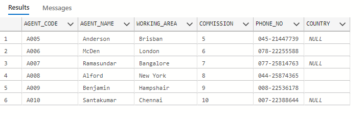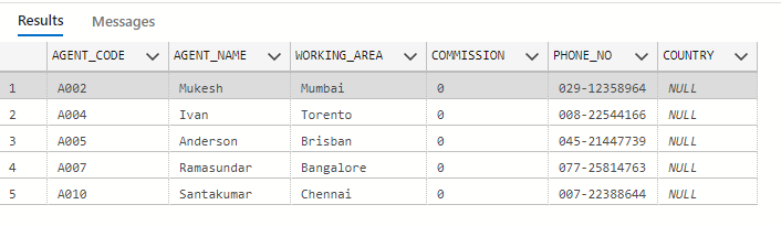 "AGENT_CODE" NVARCHAR(10) NOT NULL PRIMARY KEY,
