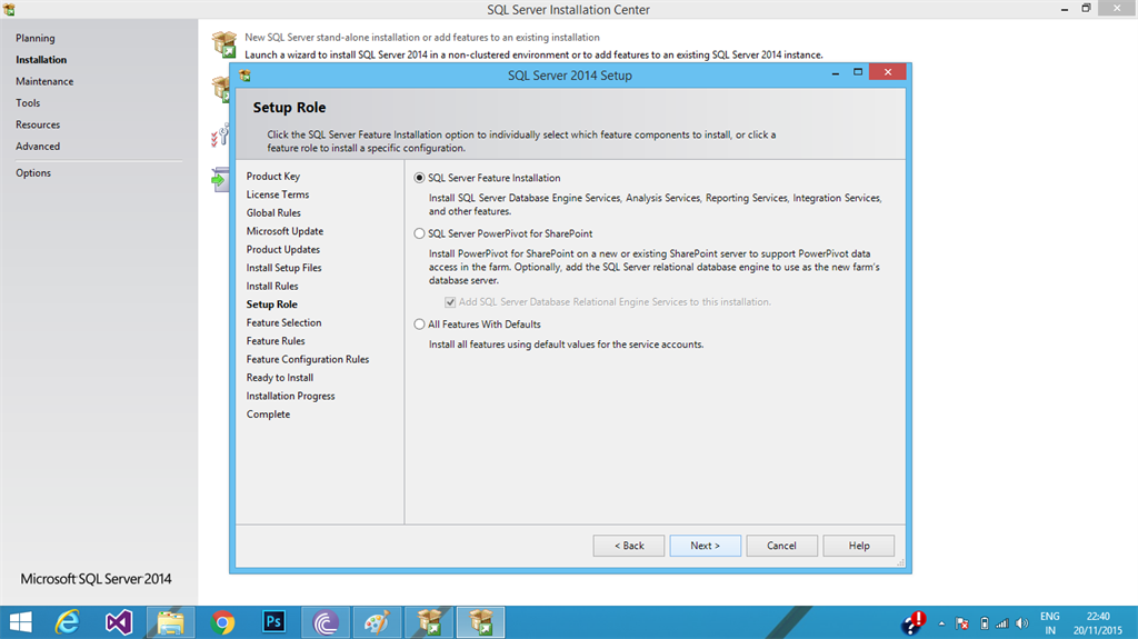 Note If you have previously installed Sql Server then uninstall it completely first.