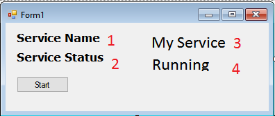 First, create a Windows application and put 4 label controls for displaying service name and status of the service.