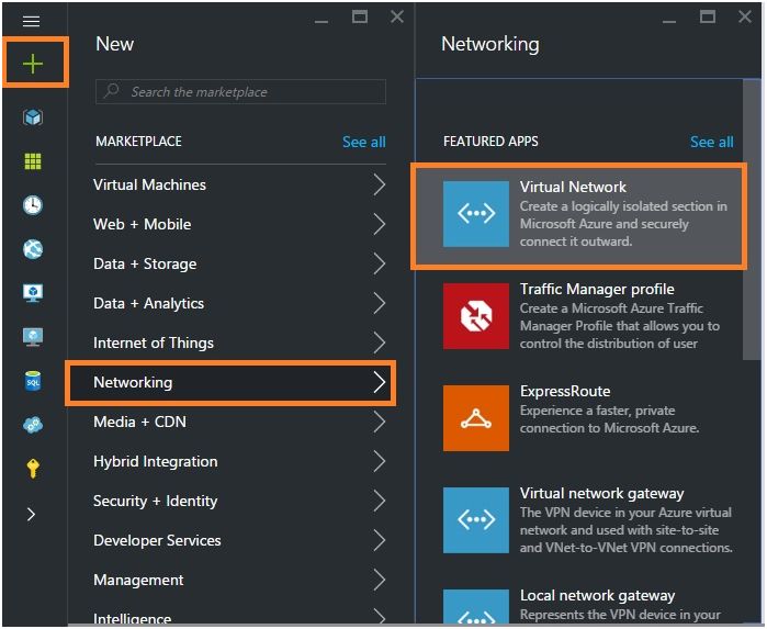 In the Jump bar, click New > Networking > Virtual Network.