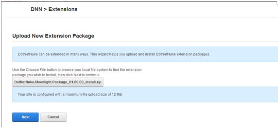 Now we are going to apply custom skin to DotnetNuke web application, so first we need to Download any skin. In this example i am using DotNetNuke.Moonlight.Package_01.00.00_Install skin for demo purpose.