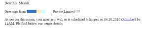 I started collecting the sample HR interview questions over the internet and practiced in front of the mirror. I recorded my voice in mobile and listened repeatedly to correct the mistakes. During that time, I moved to Chennai with my friends for a job; I remember, the day was September 27, 2010. After all the preparation of around 10 months, I got strong enough to face interviews. I had shared my resume with one of my neighbors. She was working in a US based software company in Chennai.
