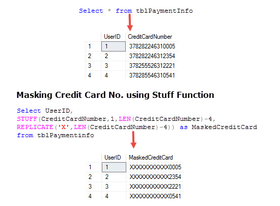 In the example, mentioned above, we have masked all the numbers except the last four of a credit card number.
