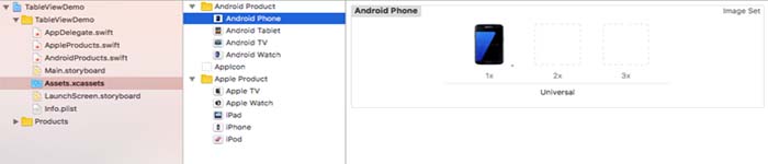 For displaying images in table list, you have to add some images in Apple list and Android list, as displayed in the below screenshot.