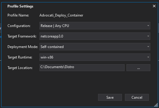 While configuring to publish, I found a bug in this process. The fix: to add a singular key: RuntimeIdentifier because an error occurred NETSDK1097, that I followed to https://github.com/dotnet/core/issues/2851 with no solution.