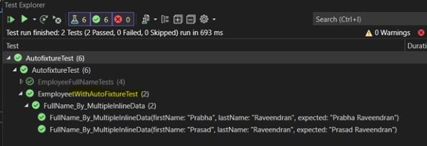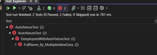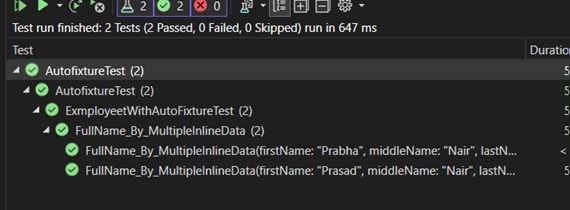 If we want to change the order of parameters in the Employee constructor or rearrange the existing parameter orders, these test cases will be passed, since we have implemented the AutoFixture.