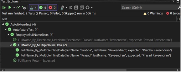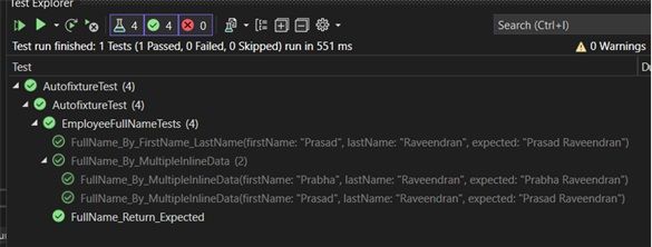Now run the test case. It should be passed. The values that are not passing through InlineAutoData attributes will be defaulted by AutoFixture.