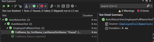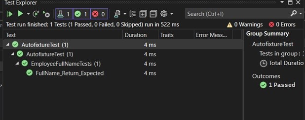 Now, if we are making any changes to the Employee class, this test case will run successfully. Autofixture made this test more stable, robust, and maintainable.