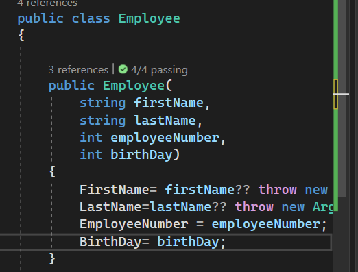 Now I’m going to add a new parameter, BirthDay, into the Employee constructor.