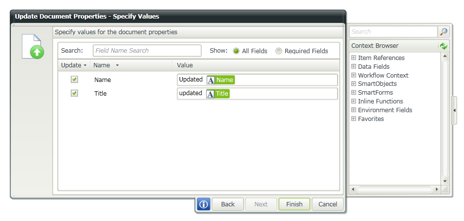 Specify the document for which the properties have to be updated and then click on Next button.