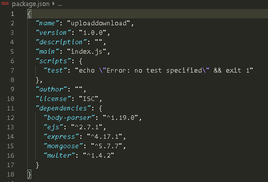 6. The following packages will be installed: express ejs body-parser multer mongoose.