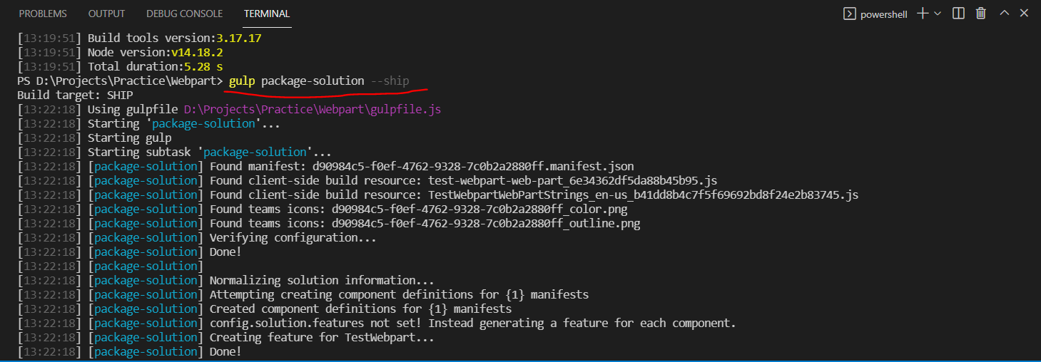 Now we have to deploy the package in App catalog site so that the Graph API permission will be sent for approval to the global administrator, for that the solution needs to be packaged.