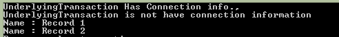 - Console.WriteLine("UnderlyingTransaction Has Connection info.,");