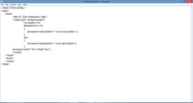 - Let’s create a document called IfElseStatements.html