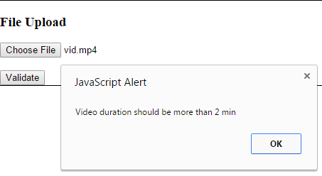 I had a requirement where I had a file upload control with me and I wanted to validate the video duration before uploading it. I did lot of R & D to find a way of validating the video duration to be let say greater than 2minutes before being uploaded.