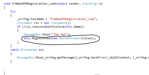 Solution : Add this line of code for closing the form in the form load and in the constructor.
