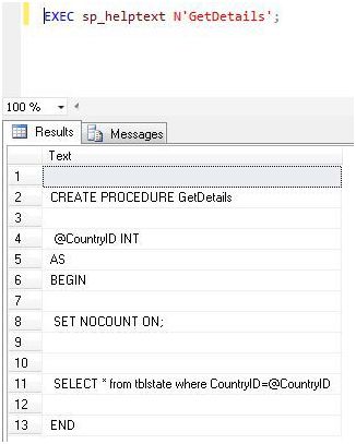 Modify the preceding SQL Syntax with appropriate database name and stored procedure name and execute the SQL Syntax.