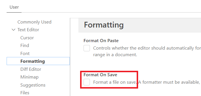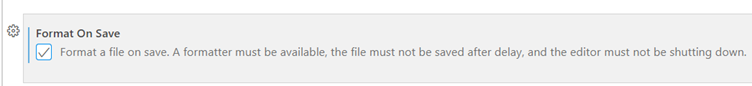 - Here, checks the option “Format on save”:
