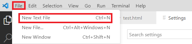 - To verify the settings, click on new text file from the file menu.
