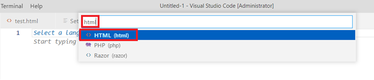 - Click on select a language. Then select HTML.