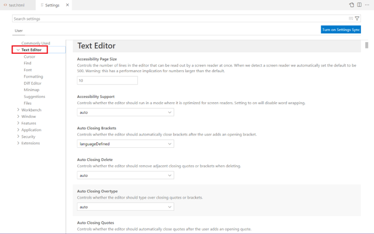 - It will open the settings page. In that, click text editor.