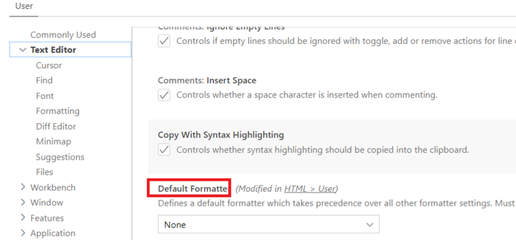 - Scroll down to “Default Formatter” settings.
